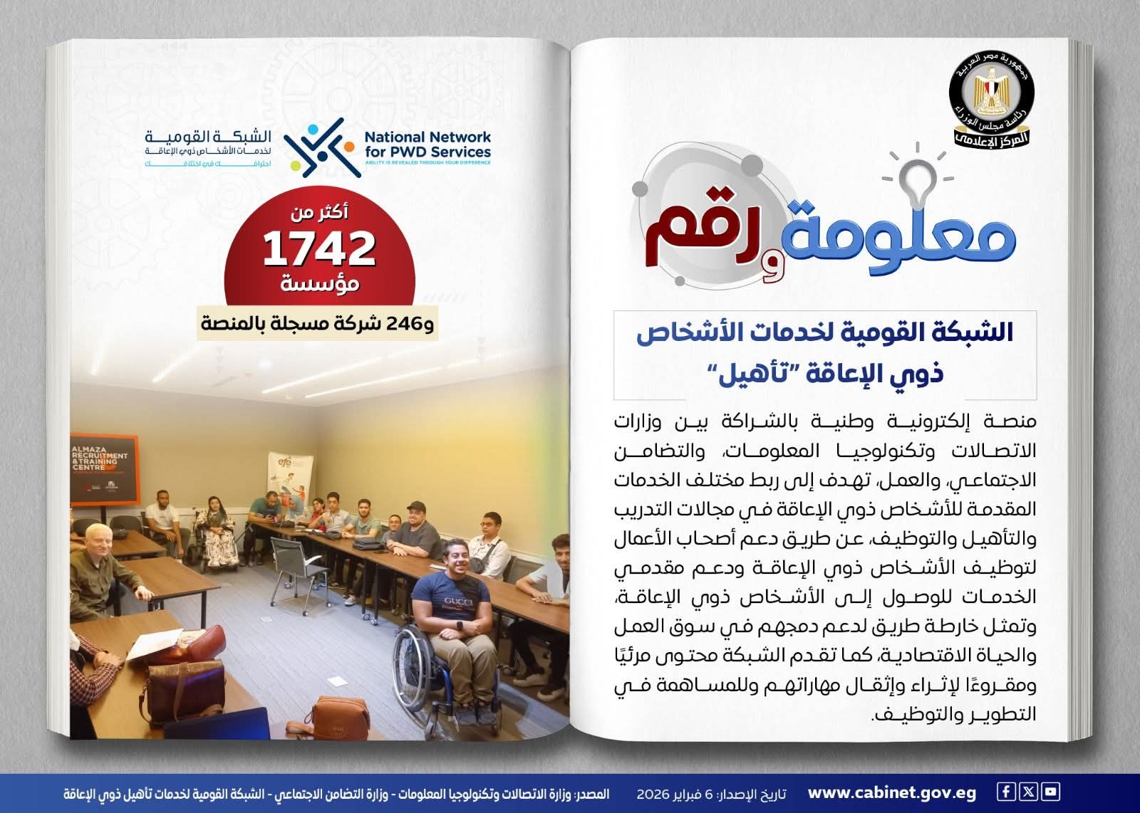 تم تأسيس الشبكة القومية لخدمات الأشخاص ذوي الإعاقة “تأهيل”، بهدف دعم الشباب والنساء من ذوي الإعاقة عبر إتاحة نافذة رقمية موحدة تربط الجهات المعنية بتقديم خدمات التدريب والتأهيل والتوظيف بما يساهم في تيسير الوصول إلى فرص العمل المناسبة.
