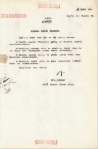 وتتضمن الوثيقة أمرا مؤرخا في 11 نوفمبر 1964، موقعا من قبل رئيس جهاز الأمن القومي ضياء سليشيك، ومرسلا إلى المديرية المركزية في اسطنبول مع تصنيف “سري للغاية”، بشأن إقامة الخميني في تركيا برقابة من الاستخبارات في الفترة بين 4 نوفمبر عام 1964 و5 نوفمبر عام 1965.