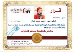 89- رئيس الهيئة العليالشؤون المرأة بالمجلس العربي للمثقفين والأكاديميين للسلام والتنمية