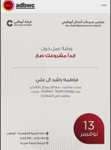 توجهت دكتورة سهير الغنام للمشاركة في ورشة عمل إبدأ مشروعك صح بحضور نخبة مميزة من سيدات أعمال أبوظبي وأدارت الورشة المدربة فاطمة راشد آل على