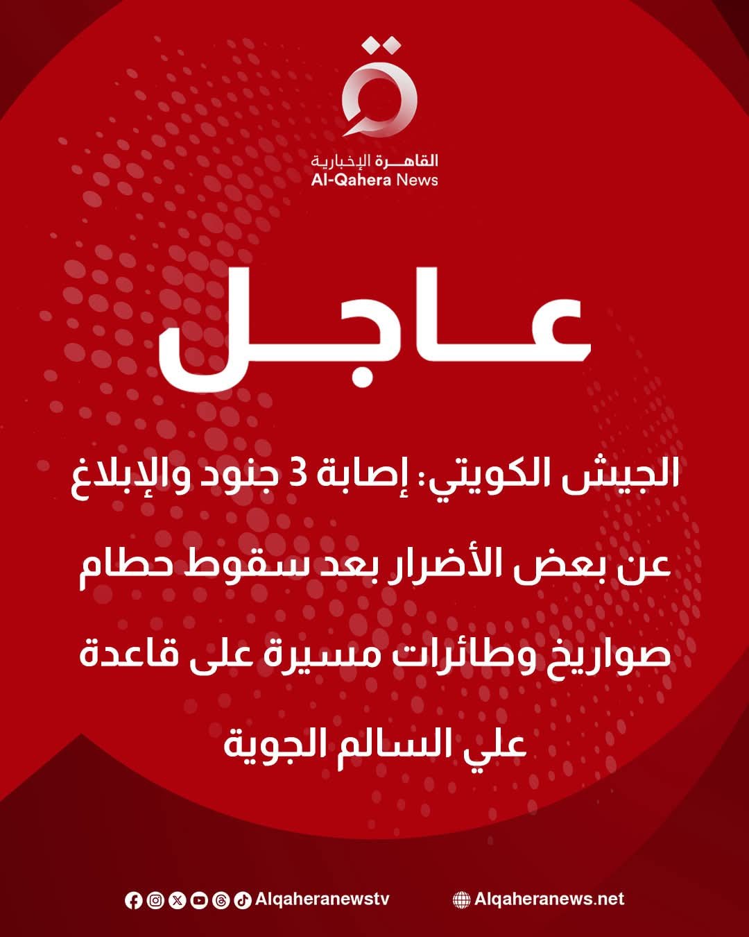 عاجل.. الجيش الكويتي: إصابة 3 جنود