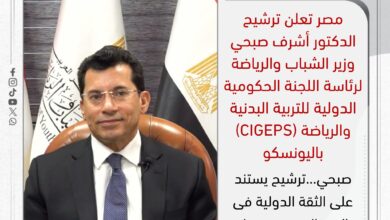 مصر ترشح الدكتور أشرف صبحي لرئاسة اللجنة الحكومية الدولية للتربية البدنية والرياضة (CIGEPS) باليونسكو نهى عراقي أعلنت وزارة الشباب والرياضة…
