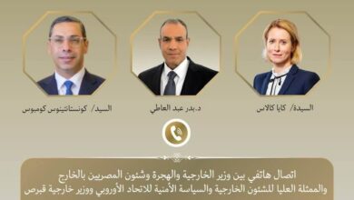 اتصال هاتفي بين وزير الخارجية والممثلة العليا للشئون الخارجية والسياسة الأمنية للاتحاد الاوروبى ووزير خارجية قبرص