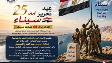 الاتحاد العام للجالية المصرية بفرنسا يهنئ الرئيس عبد الفتاح السيسي والشعب المصري بمناسبة ذكرى تحرير سيناء بقلم . عبدالحميد نقريش:…